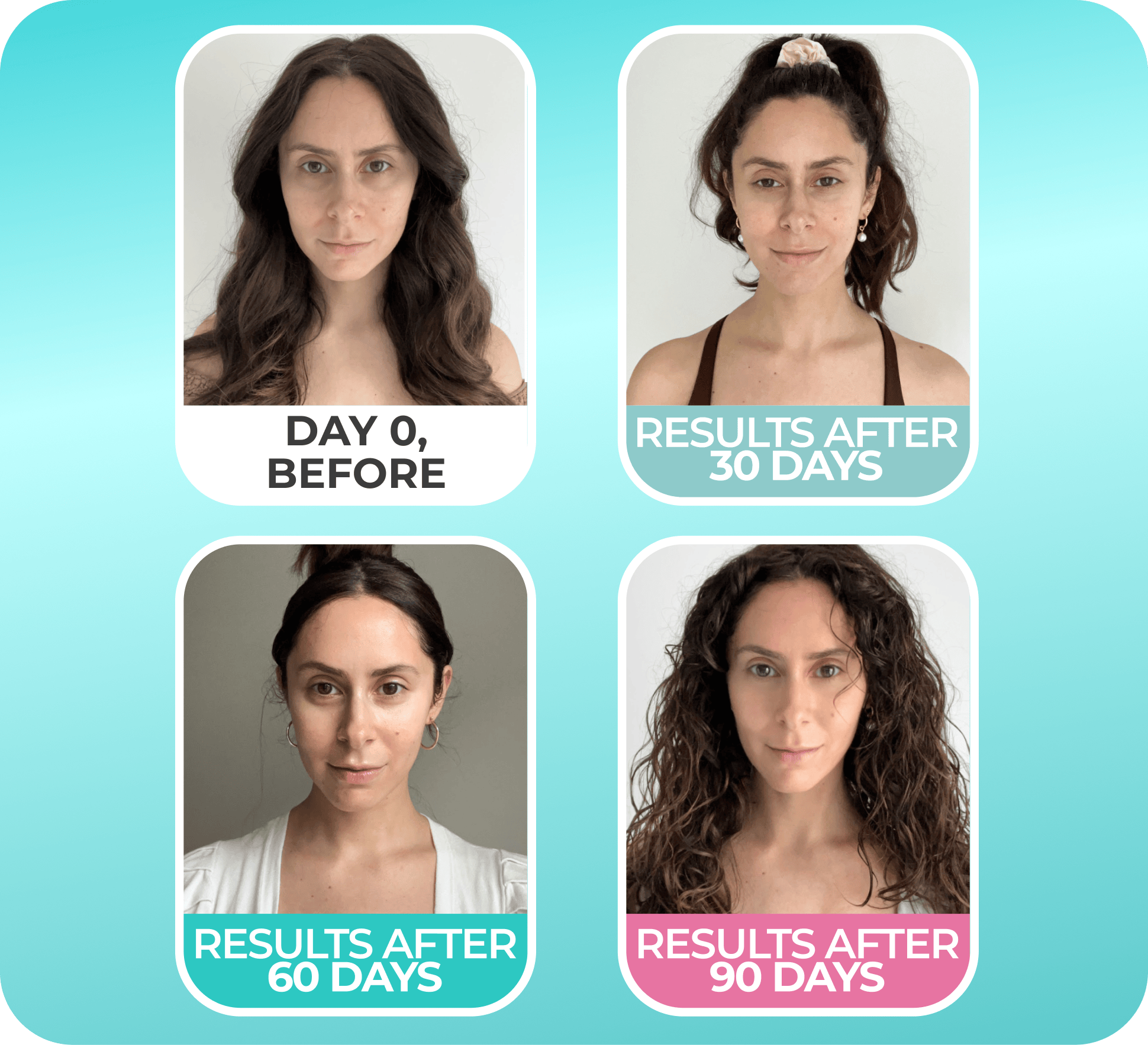 Simply take a weekly picture over the course of your transformation, andsimply send it to our friendly Customer Care Dream Team atinfo@mydermadream.com